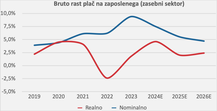 Inflacija naj bi se letos večino časa postopoma umirjala, ob koncu leta ali na začetku naslednjega leta pa bi se lahko zaradi izteka ukrepov za zajezitev visokih cen energentov ponovno nekoliko povišala. Ocena je, da se bo inflacija približala dvema odstotkoma leta 2026.